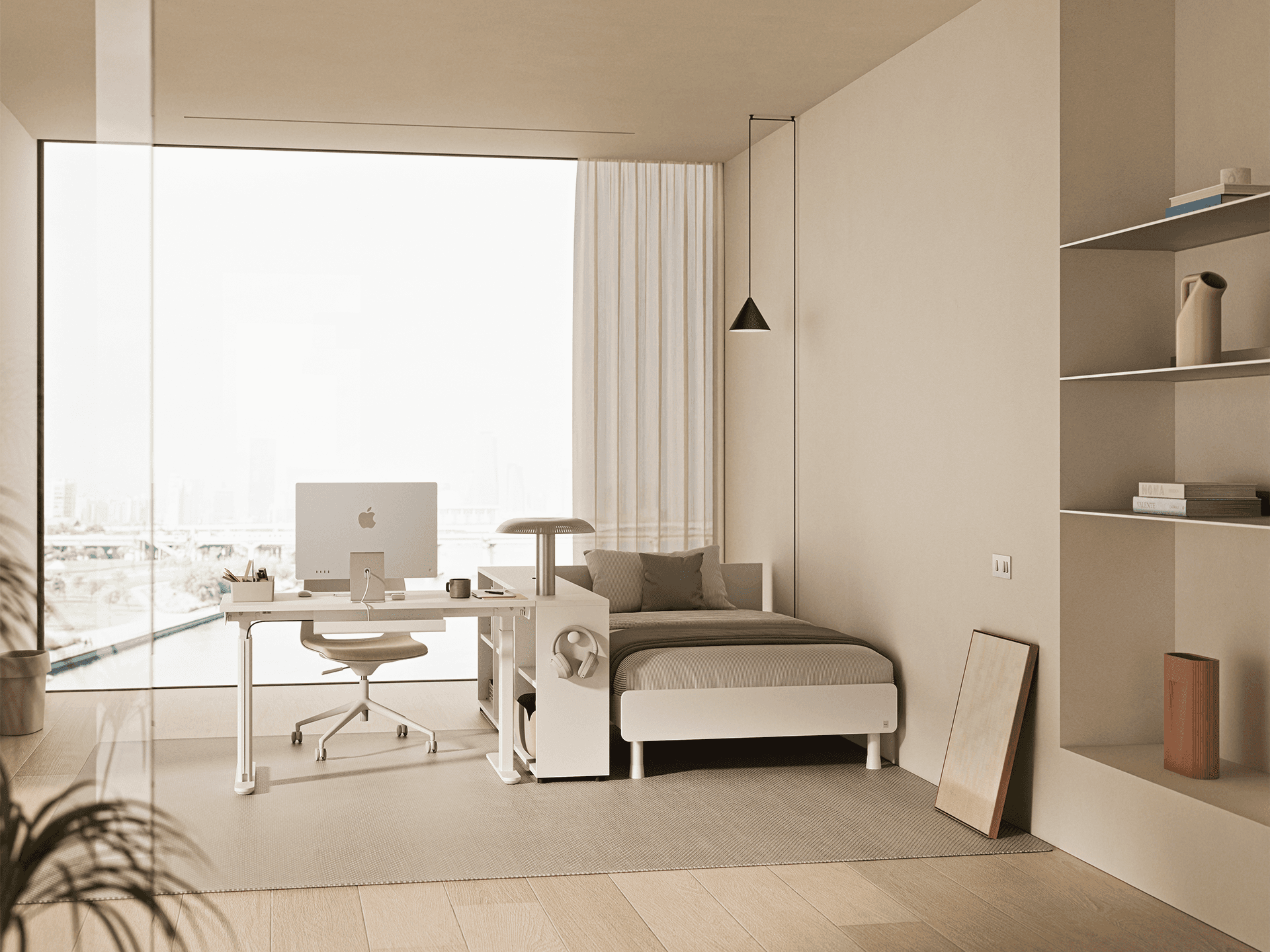 Visualising a modular furniture system through 3D environments and assembly films. We explored flexible layouts and core identity, focusing on the balance between objects and space.